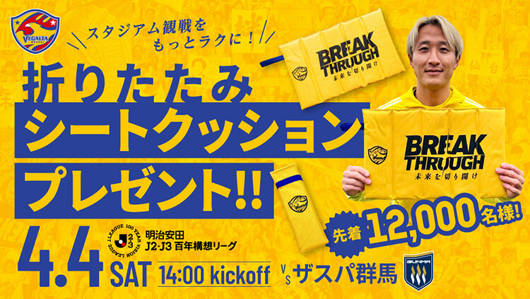 4月4日(土)開催の明治安田J2・J3百年構想リーグ第9節 ザスパ群馬戦にて「BREAKTHROUGH DAY」を開催いたします。